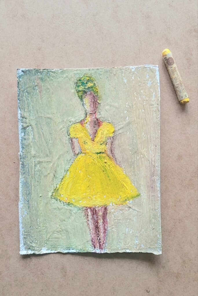 Le jaune reviendra très sûrement dans mes futurs projets. Accompagné du pastel à l’huile, bien évidemment.