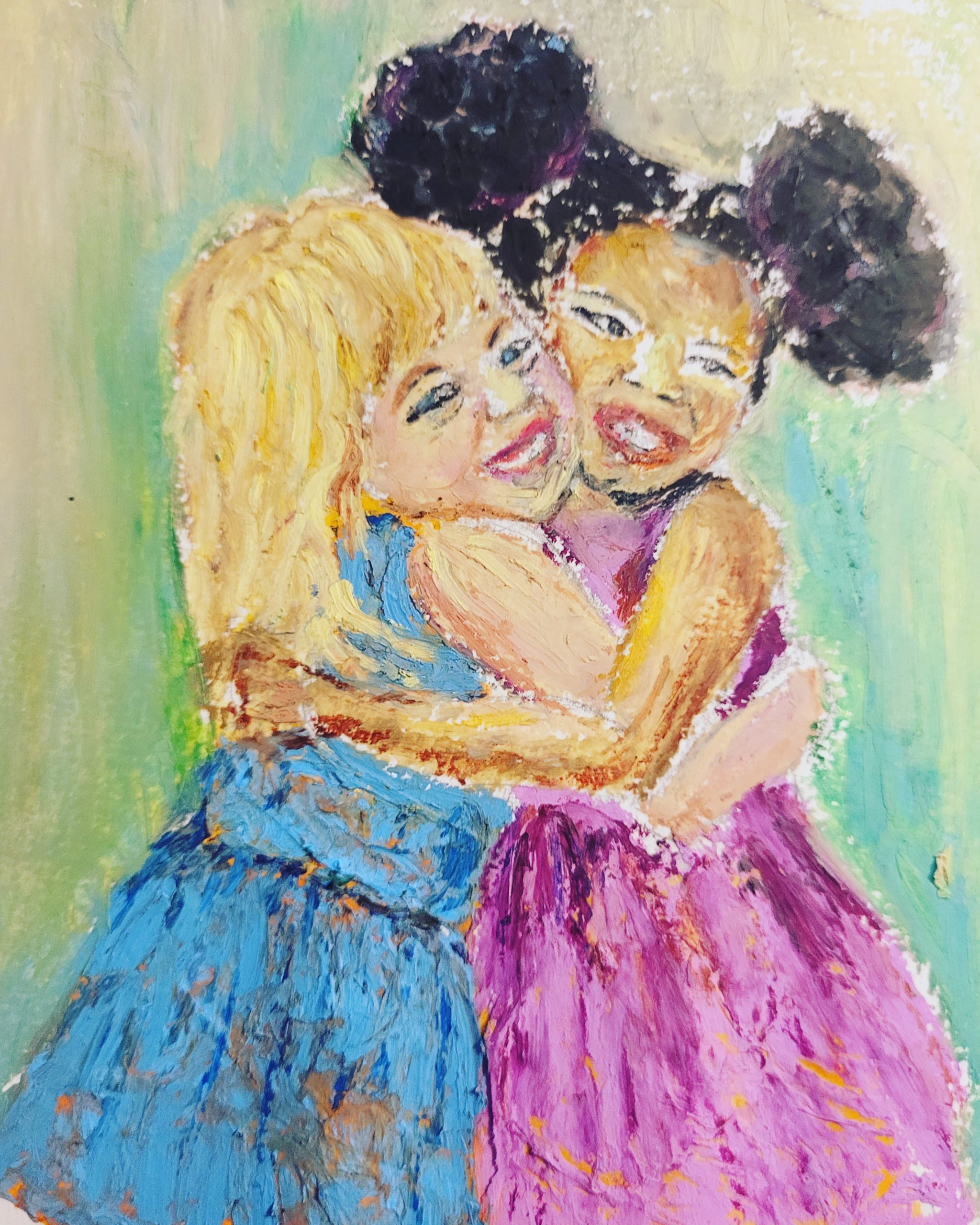 J’aime peindre du blanc avec mes pastels à l’huile, sans forcément utiliser le baton de couleur blanche mais plusieurs couleurs ensemble qui seront perçues comme du blanc.